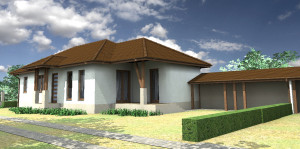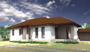 A 2025-ben épülő ház falai Porotherm 30 X-therm síkra csiszolt, „okos” téglából épülnek + 15 cm dryvit szigeteléssel. A tető beton cseréppel lesz fedve.