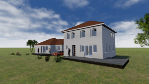 A 2025-ben épülő ház falai 30 cm-as TÉGLÁBÓL épülnek + 12 cm-es grafit dryvit szigeteléssel. A tető Bramack beton cseréppel lesz fedve.