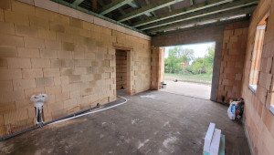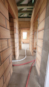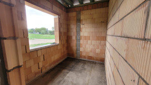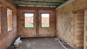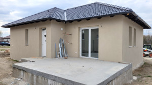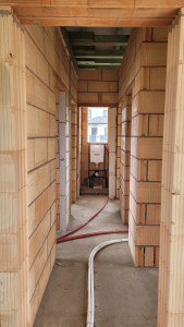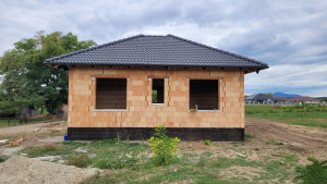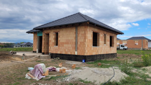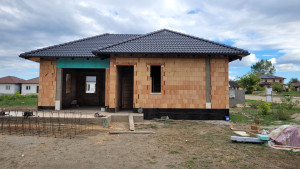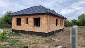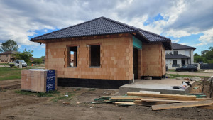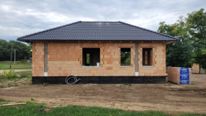 A 2025-ben épülő ház falai 30 cm-es TÉGLÁBÓL épülnek + 15 cm dryvit szigeteléssel. A tető beton cseréppel lesz fedve.