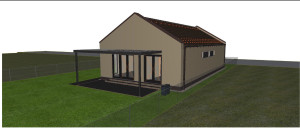 A 2025-ben épülő ház falai 30 cm-es TÉGLÁBÓL épülnek + 15 cm dryvit szigeteléssel. A tető beton cseréppel lesz fedve. A födém fafödém, 35 cm kőzetgyapot szigeteléssel. A tető héjazata beton cserép.